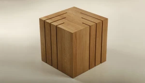At the same time it can be a lighting fixture, table and chair. It is made of whole oak, in whose basic form was intervened by vertical slots. Through these slots is penetrating colored light that comes from the integrated sophisticated RGB LED lighting that can be programmed so that at certain time intervals changes color in the full spectrum, or just choosing one color from the spectrum. The lighting can be programmed by remote control.
