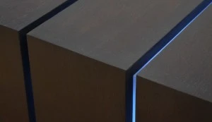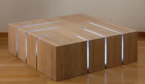 ... or, perhaps, a multifunctional piece of furniture Piazza designed by Ada Kezić for Lapibus Ltd. This is a coffee table of solid oak, whose basic form was intervened by vertical slots. Through these slots is penetrating colored light coming from the LED and whose color can be changed.
