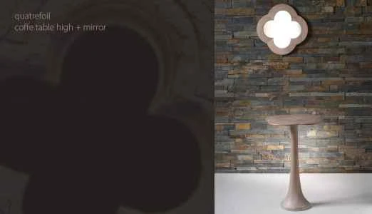 The design of the coffee table is inspired by nature organic forms ( 4 leaflet clover) while the design solution of the mirror comes from the decorative element of Dubrovnik's architectural heritage (quatrefoil).