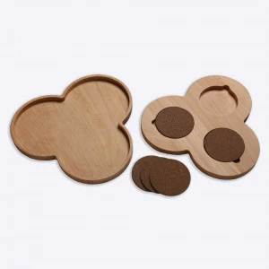 Mali set koji se sastoji od pladnja, daščice za rezanje/podmetača za bocu i 3 podmetača za čaše.