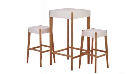 Stol i stolice izrađeni su od punog hrasta, a površina sjedala i stola zaštićena je lakovima koji nisu štetni za okoliš, a pružaju glatku površinu koju je lako održavati. Noge stola i stolica su u prirodnom drvu.